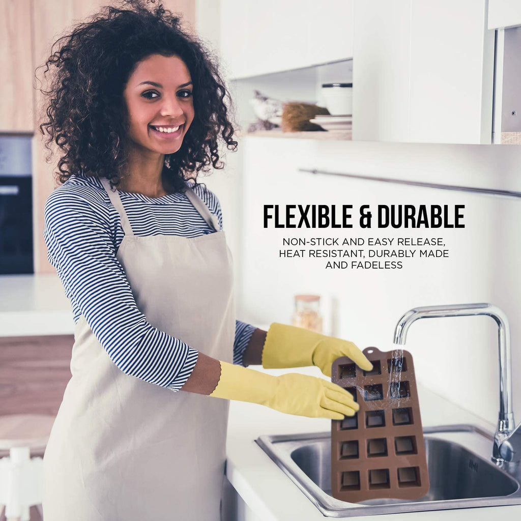 ? Silicone Food Grade Reusable Non-Stick Multi Shape 15 Cavity Chocolate Molds / Baking Trays (Brown) ?