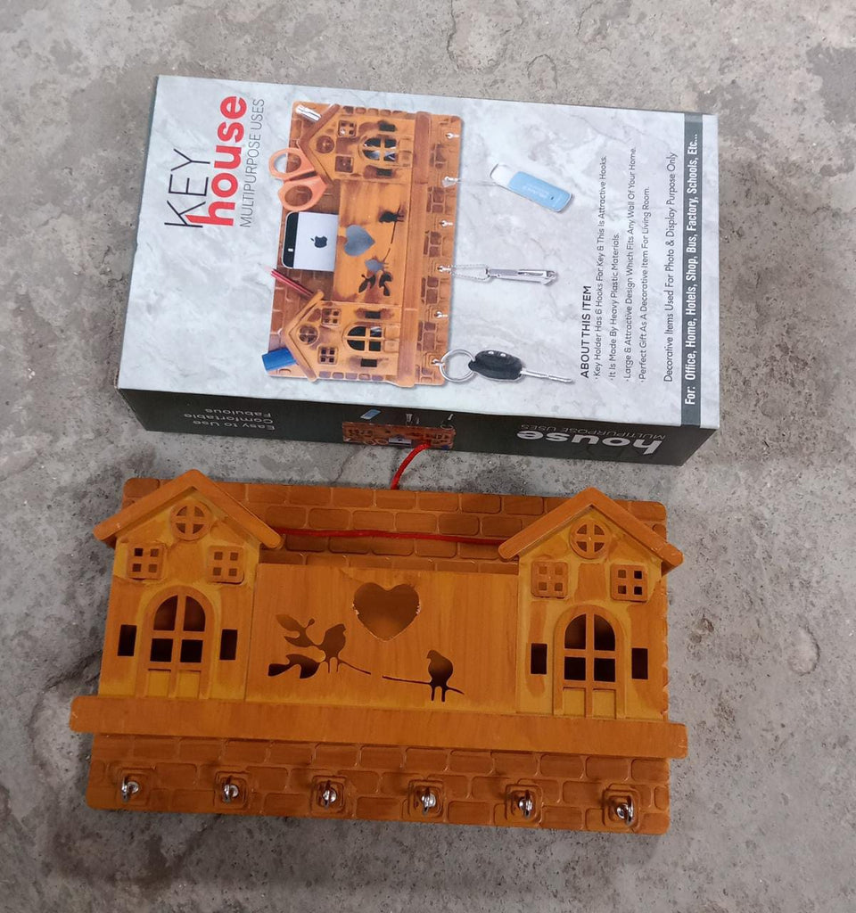 9125 6 Hooks House Design Wooden Key Stand for Entryway, Kitchen, Office, Mudroom Wall, Mount Decorative Keys Organizer Key Holder.